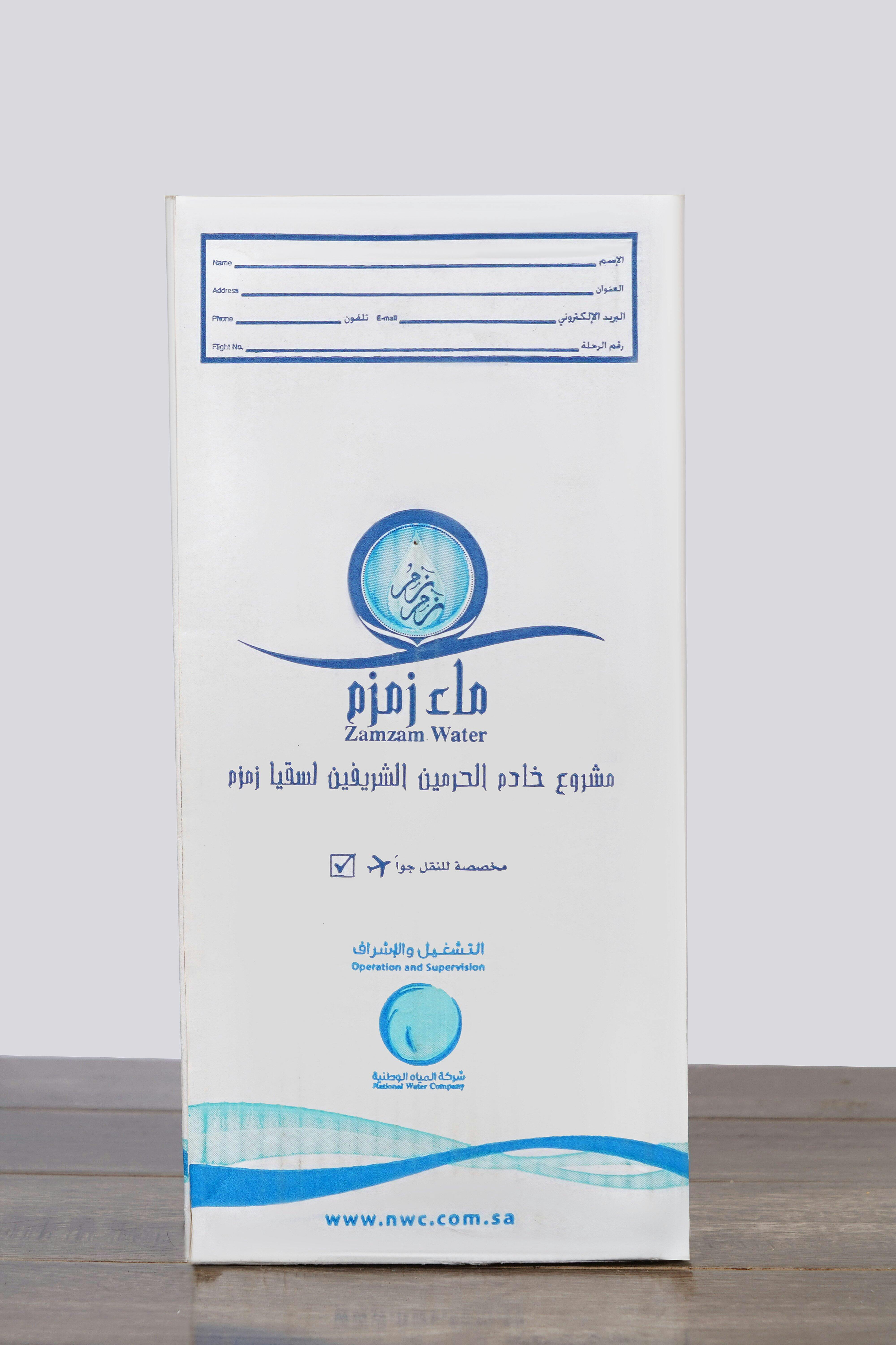 Get 5 liter Zamzam Water in secure airport packaging directly sourced from Makkah, Saudi Arabia.This 5-liter bottle ensures safe transport, preserving the purity of this blessed water.